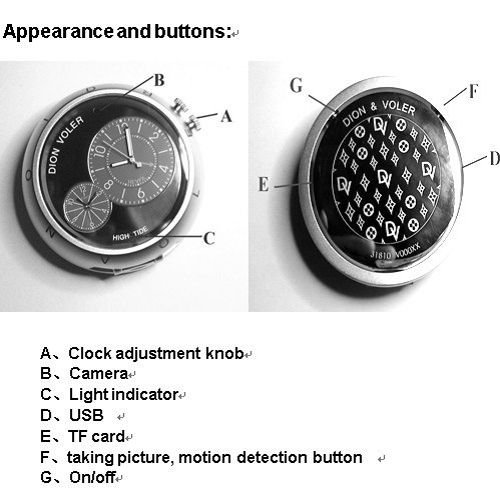 This product is the first high-definition digital camera with motion detection and camera-equipped clock, TF card memory, also known as "family security clock", can shoot photos and high-definition screen, and this product is simple, small and exquisite, beautiful and practical, easy to carry, the family security, education, life and other areas of essential utilities, deeply liked by all users of all ages.