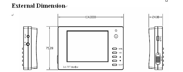 Key Feature£º * Portable tester with3.5 inch TFT display(video input and out put) * Auto identity NTSC/PAL * Power-saving mode can display in a standby state * Small appearance, highly integrated and practical * Audio test function, built-in 0.5 speaker, support for audio input / output * Support DC12V output, charging for camera. * Built-in rechargeable battery DC3.7V/2200mAh, Automatic charging function * Power supply: Battery-powered, computer USB port power supply, DC5V/2Aadapter power supply * Particularly suitable for project installation of the camera effects, the lens range, the lens view angle, etc. adjust positioning, saves time and effort, convenience
